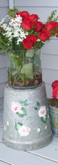 Flowers look great anywhere! Here is an arrangement with a down-home feel.